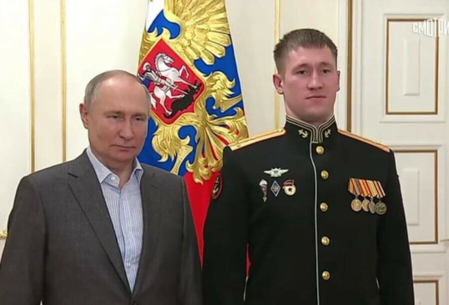 Фото: телеграм-канал Станислава Мелюкова Житель Белогорска, выпускник гимназии № 1, а ныне капитан-лейтенант бригады морской пехоты награжден именным табельным оружием на встрече с президентом страны Владимиром Путиным.
