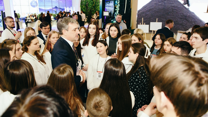 В состав делегатов вошли 40 человек — 20 из Приамурья и столько же из Амвросиевского района. Все они победители или призеры всероссийских олимпиад и конкурсов, активисты движения молодежи, лидеры школьного самоуправления. Губернатор провел для них небольшую экскурсию по нашему павильону, сделав основной акцент на космодроме, газохимическом кластере и Восточном полигоне ж/д.