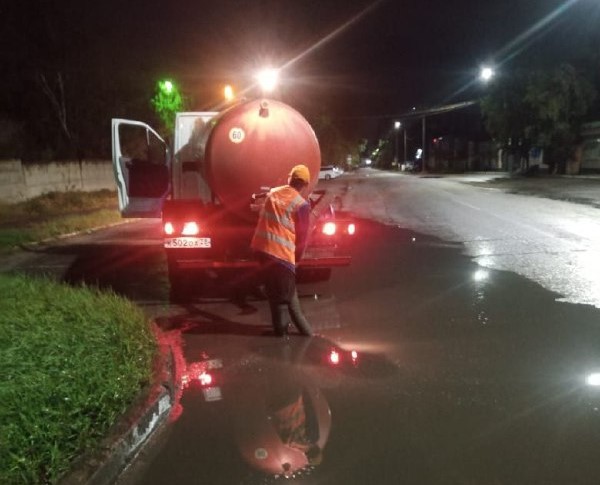 Ночью в городе 10 дорожных рабочих и 6 единиц спецтехники провели очистку ливневых решеток на различных участках, включая:
