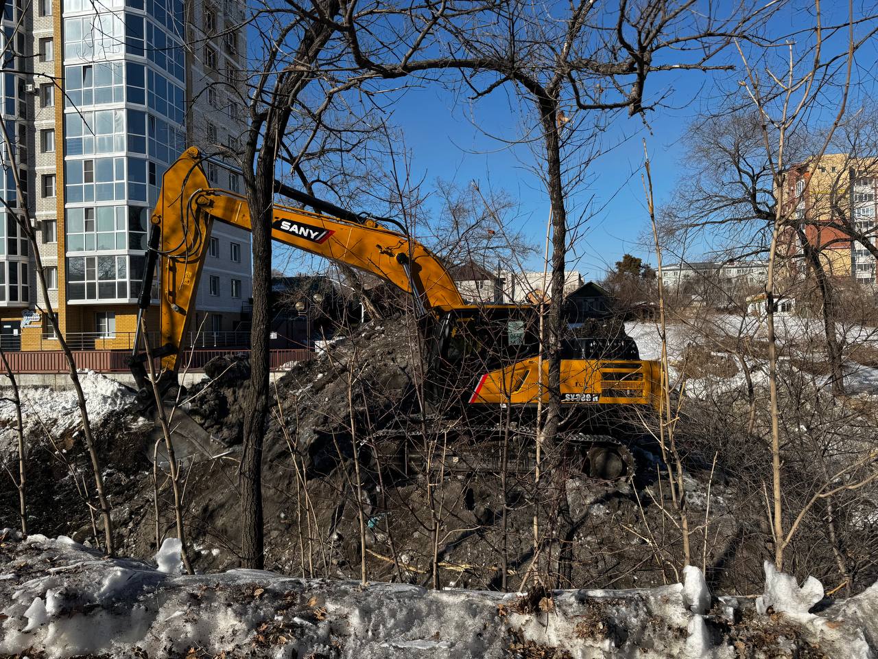 Фото: t.me/blagoveshchensk_rf В Благовещенске после оттаивания грунта по улицам пойдут грейдеры.