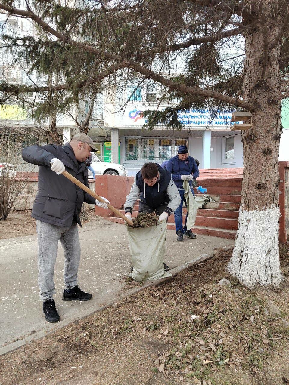 Сотрудники городского управления капитального строительства присоединились к акции «Город берегу» и убрали территорию на Зейской.