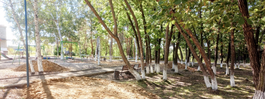 Неравнодушные сельчане помогали сотрудникам сельской администрации разравнивать новый песок. Родители вместе с детьми принимали активное участие в работе по благоустройству места для игр и отдыха в селе.