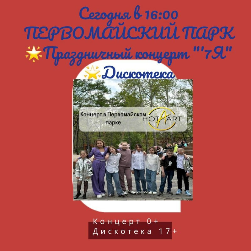 В субботу, 18 мая, в 16:00 в Первомайском парке для горожан пройдет праздничный концерт, посвященный Международному дню семьи «7я» и дискотека.