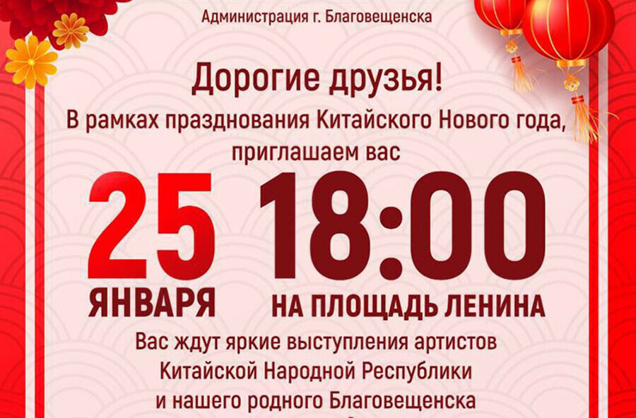 Фото: мэрия Благовещенска Жителей и гостей Благовещенска приглашают отметить Новый год по восточному календарю.