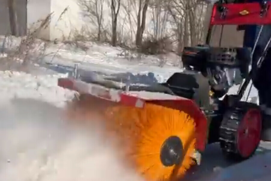 Фото: скриншот видео В арсенале ГСТК появились новые подметальные машины, которые помогут бороться со свежевыпавшим снегом.