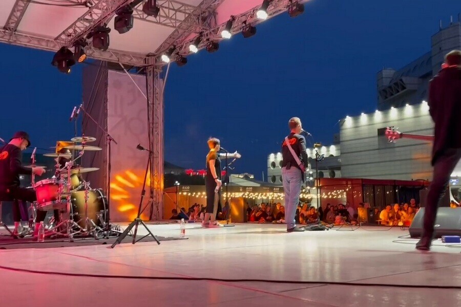 Администрация города показала атмосферу программы «АмурЭкспо–2024», которая была вечером 24 июня. Для благовещенцев играла кавер-группа «Сон Менделеева».