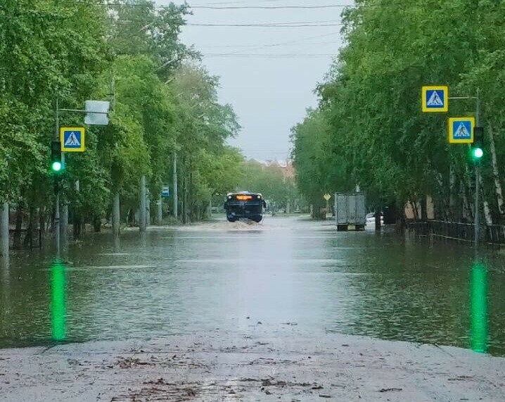Фото: t.me/skaner28 В амурской столице коммунальные службы в ночь на 17 июня начали борьбу с последствиями прошедшего в городе дождя.