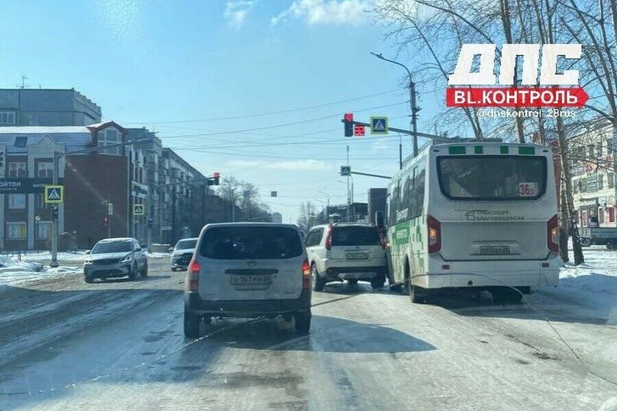 В городе отмечается увеличение количества ДТП. Паблики пестрят сообщениями о них. Например, пассажирский автобус столкнулся с универсалом в районе улиц Мухина – Пролетарская, пишет Telegram-канал dpskontrol_28rus . На фото видно, что дорога покрыта льдом.