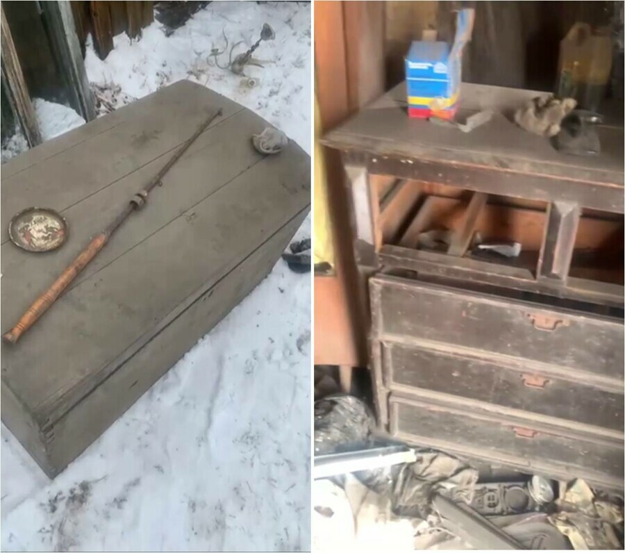 Фото: t.me/amurotgoloski В Благовещенске при разборе очередного деревянного дома был обнаружен старинный сундук.