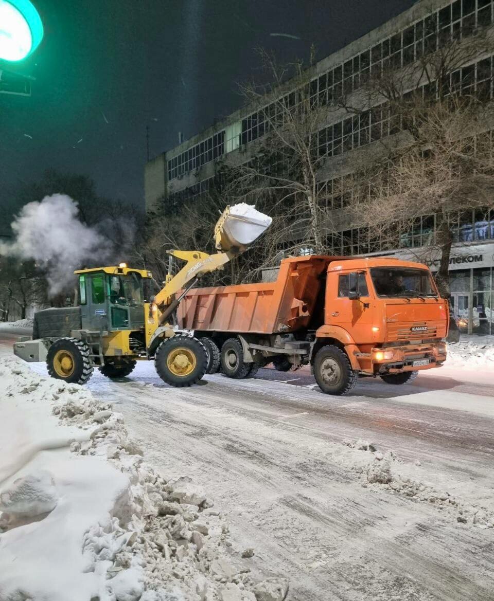 Фото: t.me/blagoveshchenskrf В Благовещенске 8 января спецтехника ГСТК продолжит очищать улицы от снега и льда.