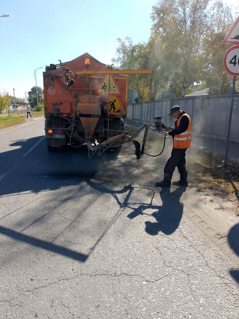На данные работы ежедневно выходит до 10 сотрудников ГСТК, которые используют трактор, погрузчик, самосвал, каток и ручной виброкаток для выполнения задач. Эти усилия направлены на улучшение качества дорог и безопасность движения в городе.