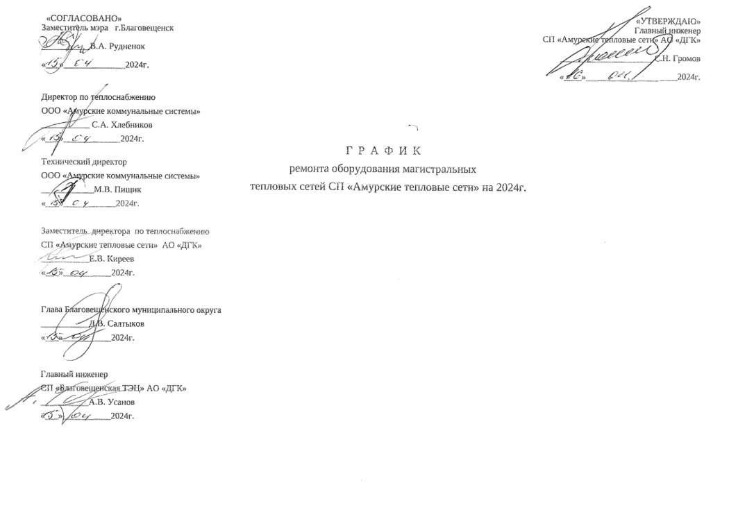 Amur.life публикует График ремонта оборудования магистральных тепловых сетей СП «Амурские тепловые сети» на 2024 год. Судя по комментарию администрации, даты в нем могут меняться.