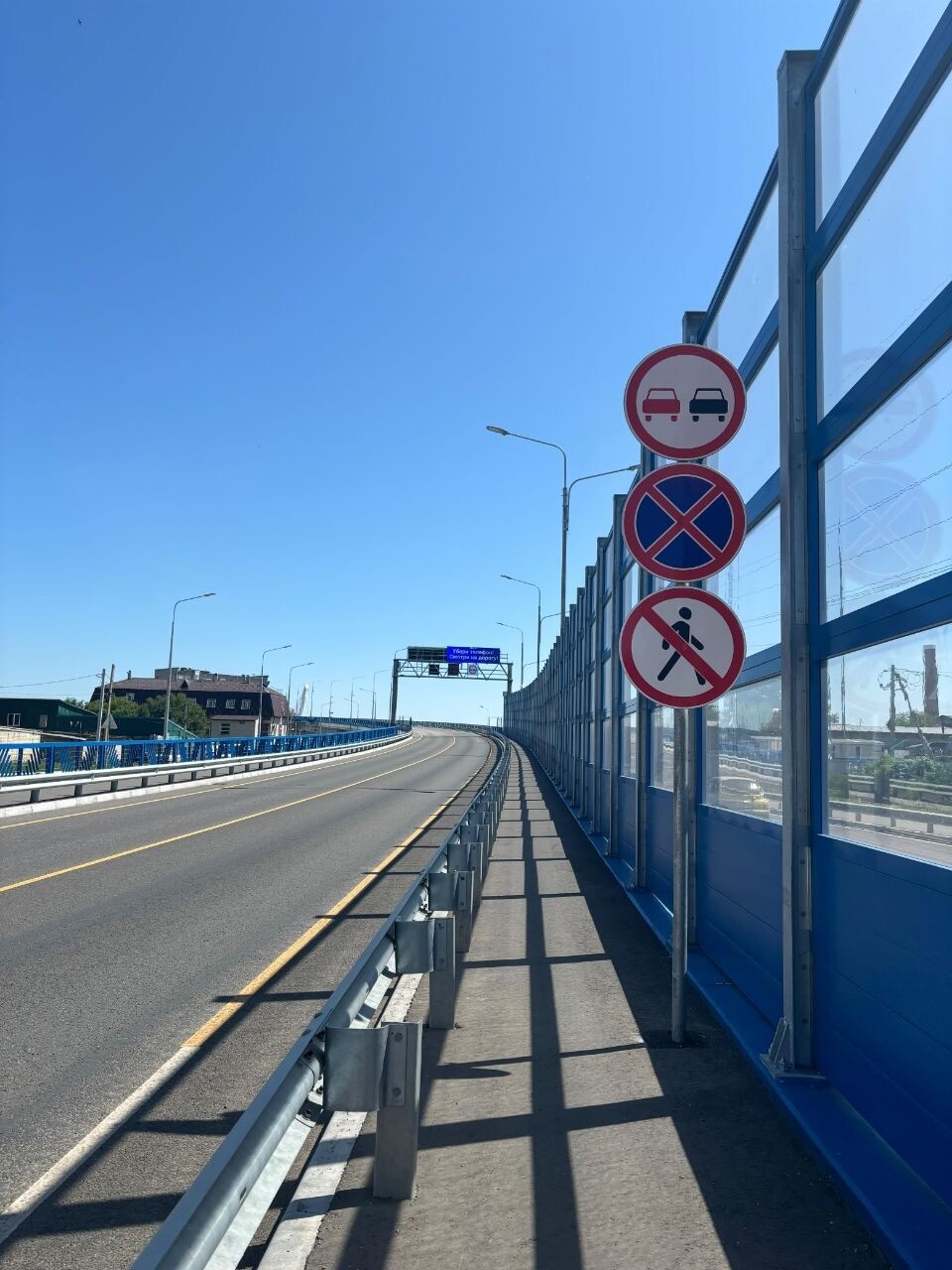 На фото видно, что запрещающие проход знаки установили по обе стороны мостового перехода. Также появилось металлическое ограждение.