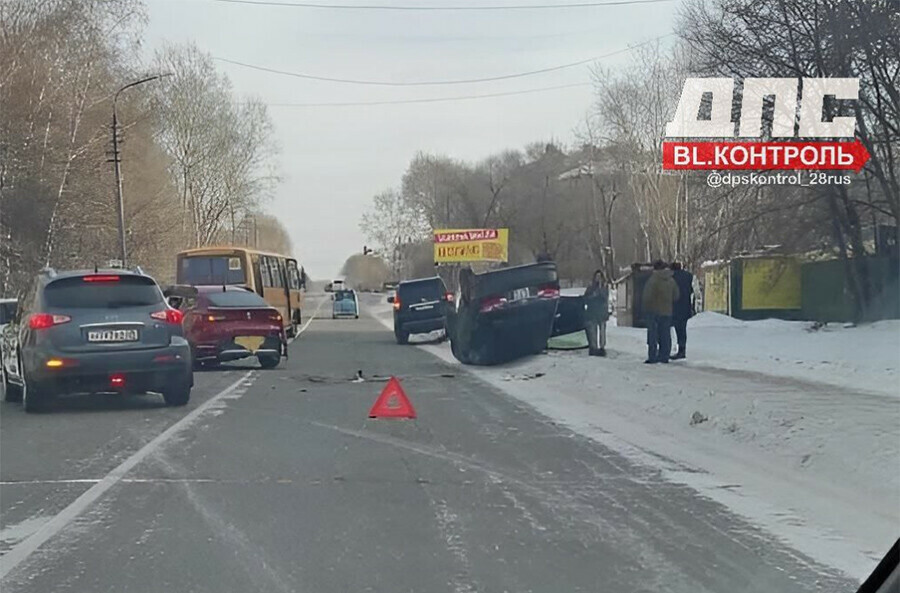 Фото: dpskontrol_28rus Сотрудники полиции устанавливают обстоятельства дорожно-транспортного происшествия, произошедшего 16 января в Белогорске.