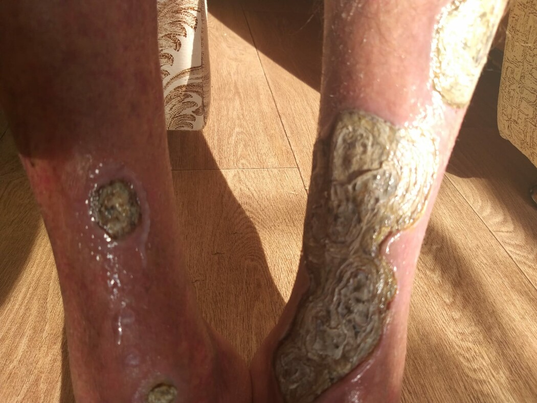 «Все врачи, кто его видят, хватаются за голову, говорят: "Как так, вы с такими заболеваниями и не на инвалидности?". Я пенсионного возраста, но приходится работать, а куда деваться? И мы семь месяцев бились, пока не дошли до минздрава, пока там не приняли меры, и вот мы семь месяцев уже с этими язвами. Они сначала были небольшими, а теперь вот так», – со слезами рассказывает Ирина Викторовна.